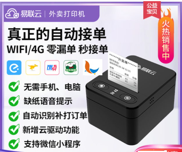 易联云k4外卖打印机k6自动接单神器WIFI饿了么美团多平台食堂点餐小程序蓝牙api开发无线4G订单云打印小票机